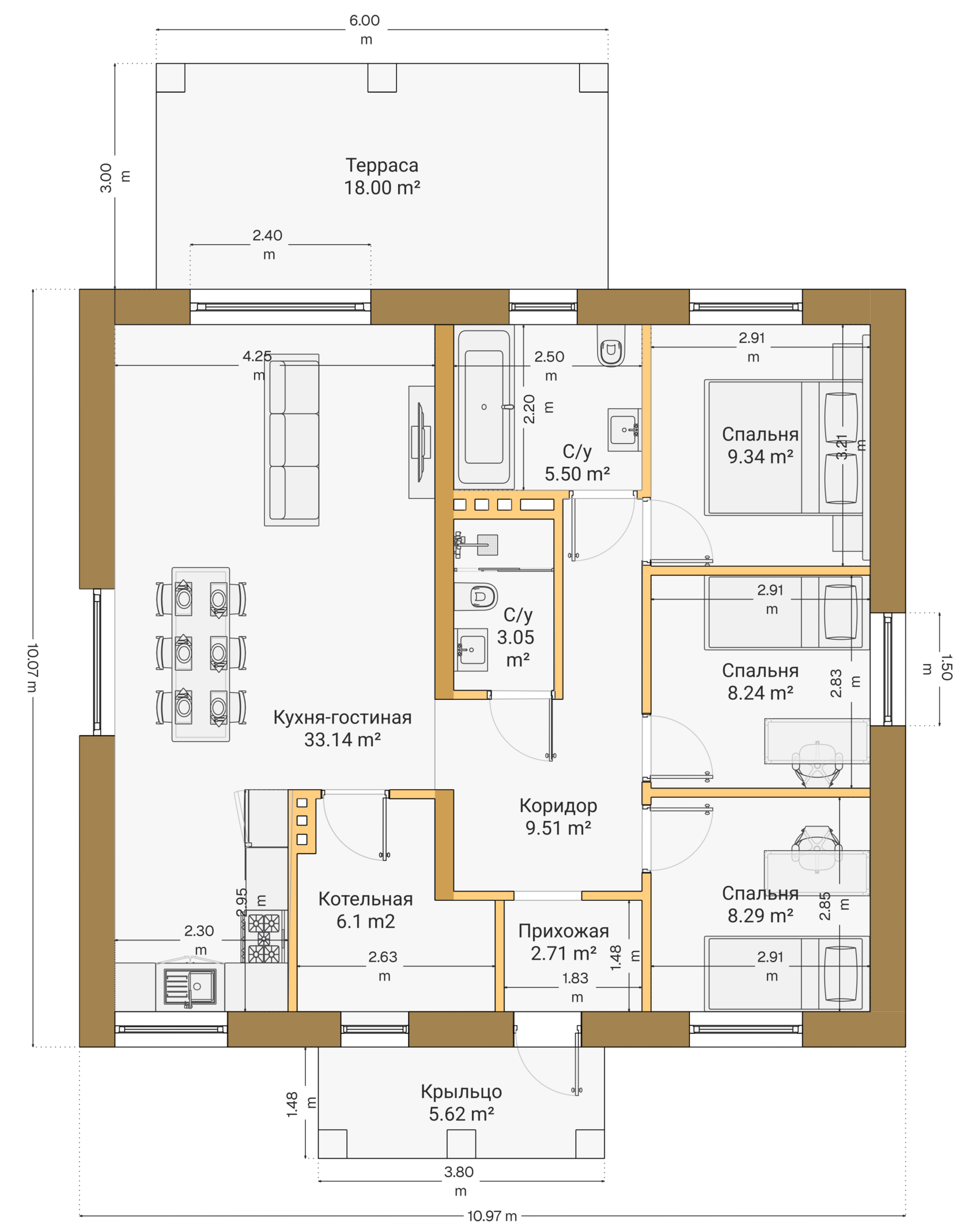 Компактный дом, в котором продумано всё: три уютные спальни, два санузла и эргономичное пространство. Высокая энергоэффективность снижает расходы, а разумный метраж помогает уложиться в бюджет.